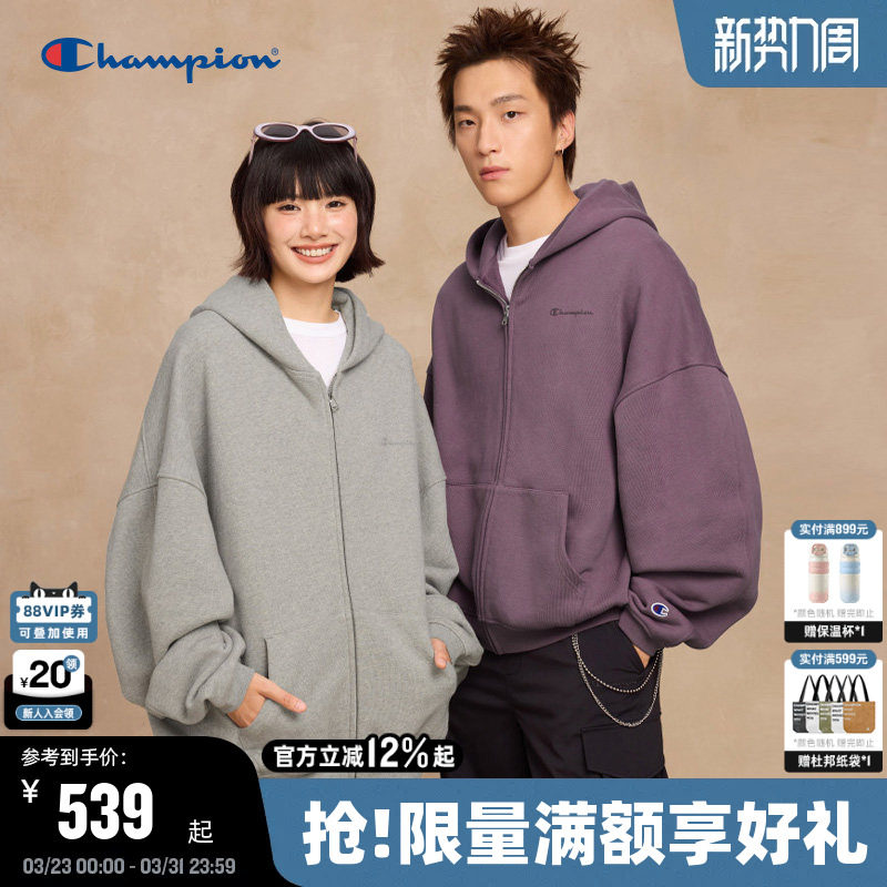 【丁禹兮同款】Champion冠军连帽卫衣男25秋季新款拉链开衫外套女