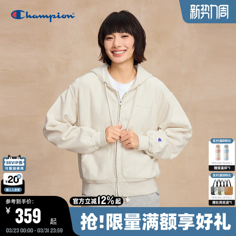 Champion冠军连帽卫衣女25秋季新款小元气少女风纯棉外套拉链开衫
