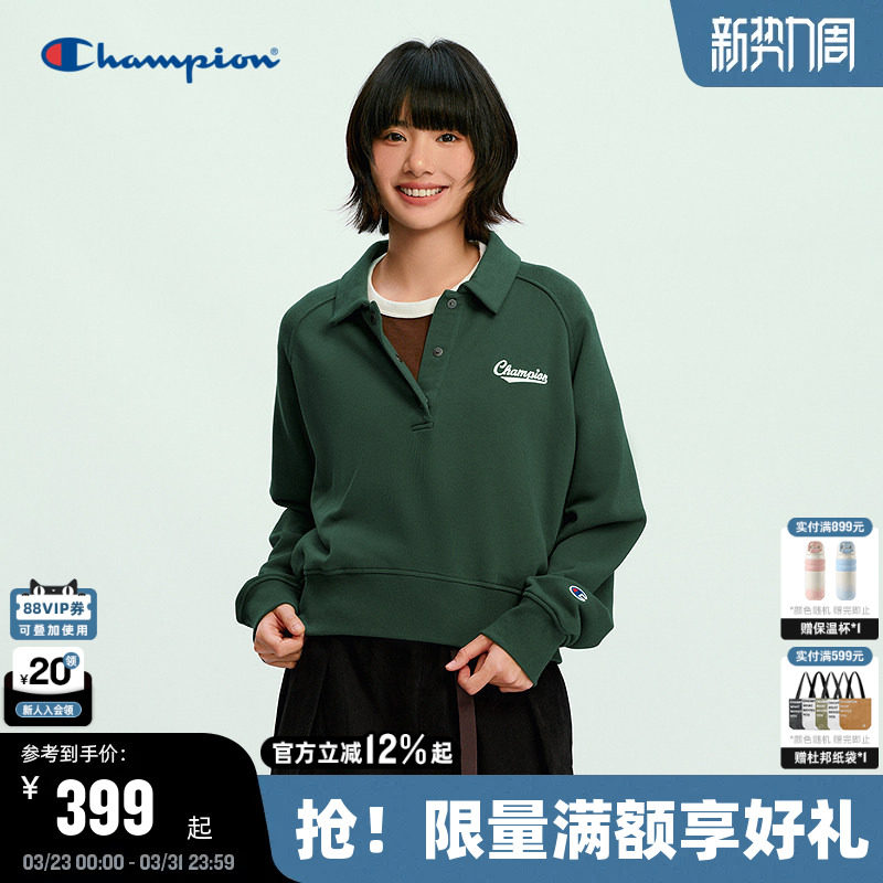 Champion冠军半开襟卫衣女2026春季新款V领纯棉翻领polo复古学院