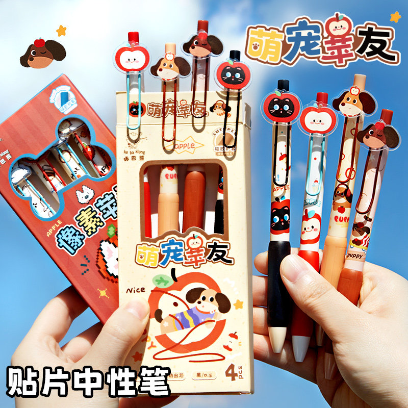 中性笔网红新款贴片按动笔学生专用高颜值ins卡通可爱笔头刷题笔