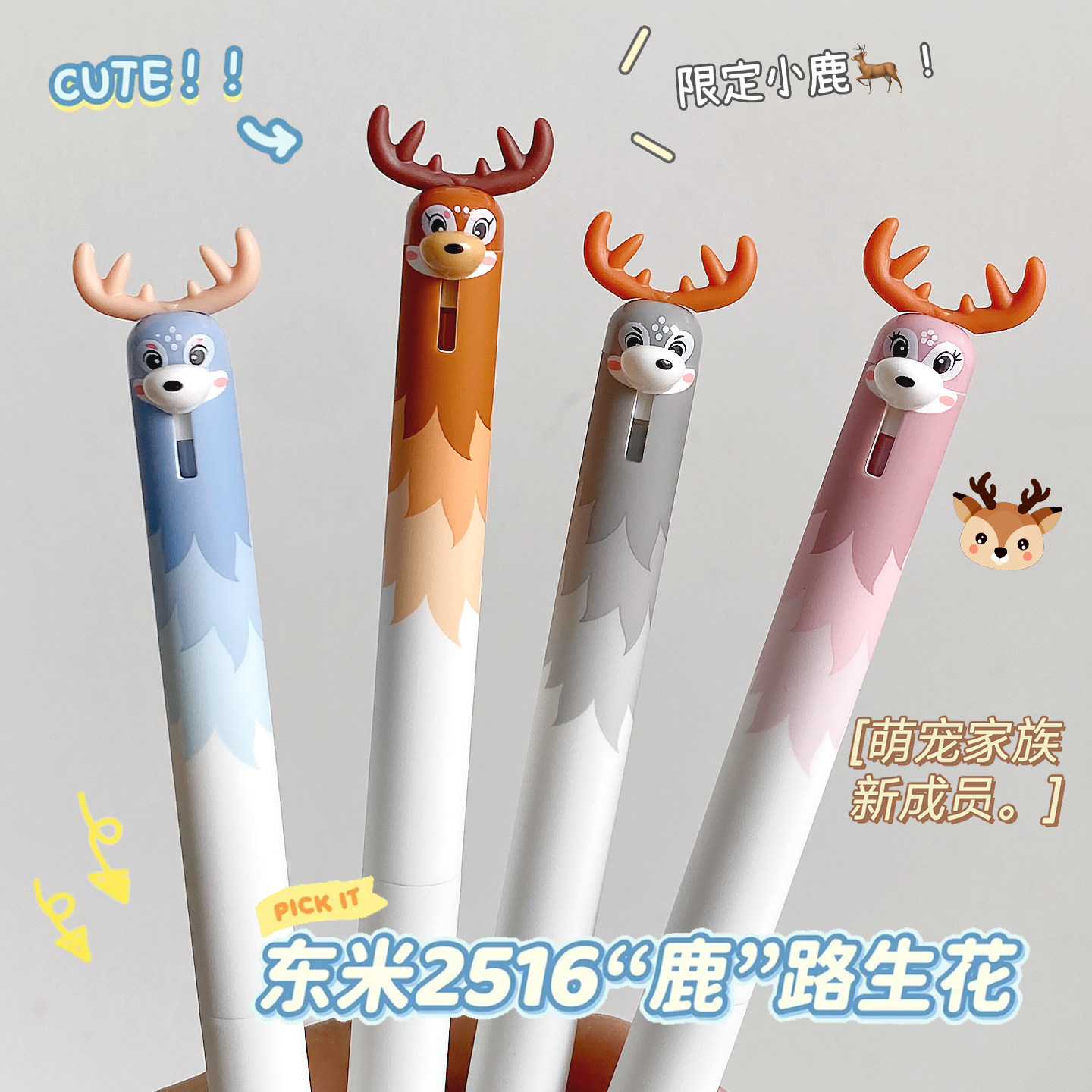 鹿路生花!东米DM-2516萌宠小鹿按动中性笔搞怪趣味解压高颜值可爱0.5mm速干顺滑刷题笔ST学生考试黑色签字笔