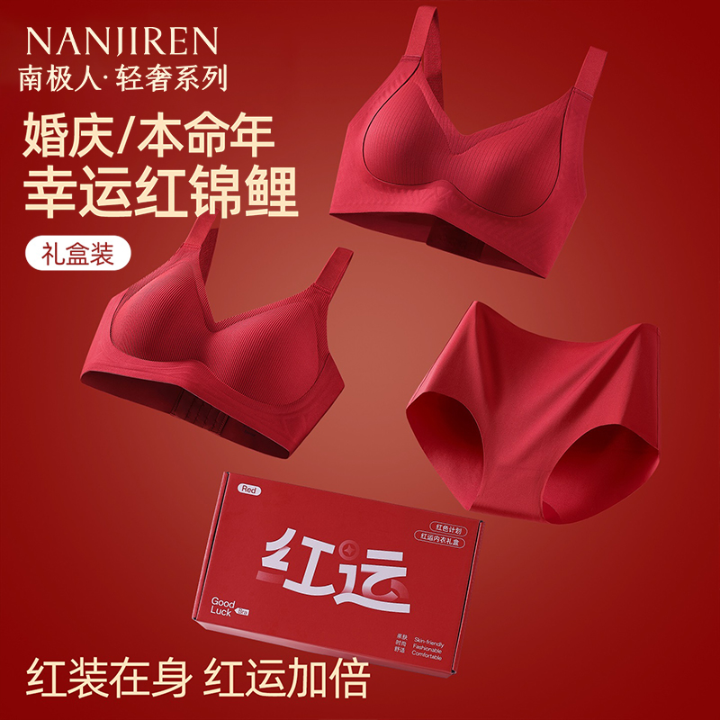 南极人2026马年结婚本命年红色内衣女套装聚拢小胸文胸内裤礼盒