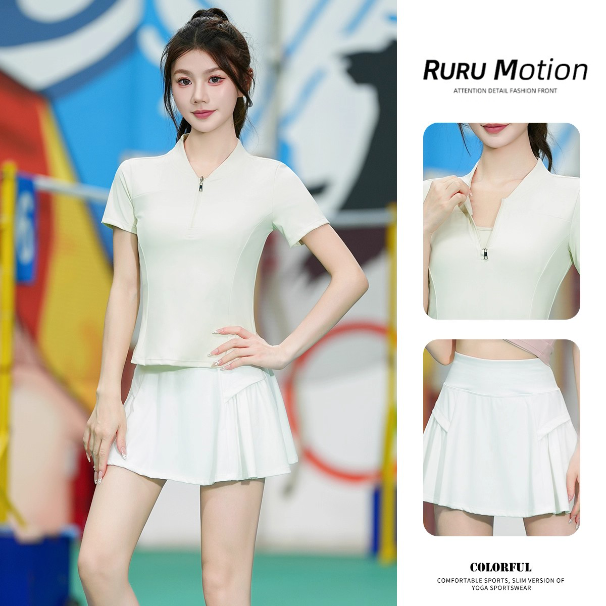 短袖速干健身套装半拉链女短裙羽毛球跑步瑜伽训练户外夏季跑步服