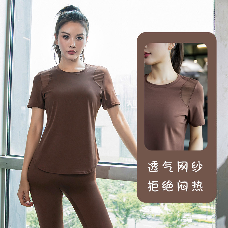 瑜伽服女夏天普拉提训练晨跑步透气网纱速干健身套装运动上衣薄款