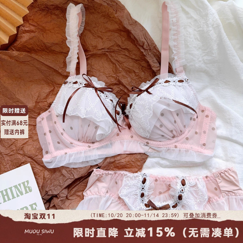 甜美日系可爱蕾丝波点内衣少女小胸聚拢软钢圈上托防下垂文胸套装