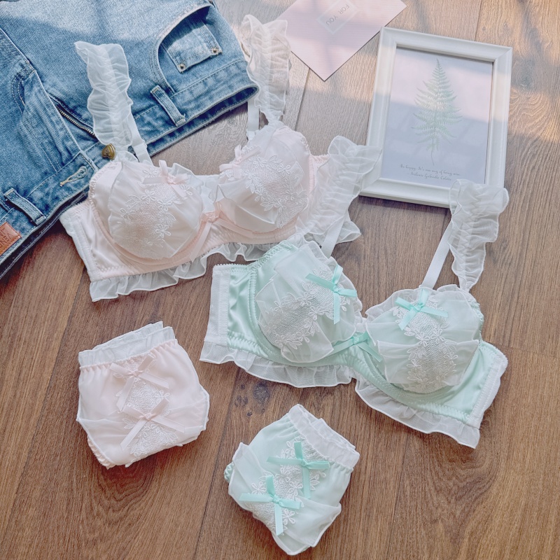 外贸日系甜美少女可爱内衣套装薄款刺绣花朵圆盘2型文胸聚拢侧收
