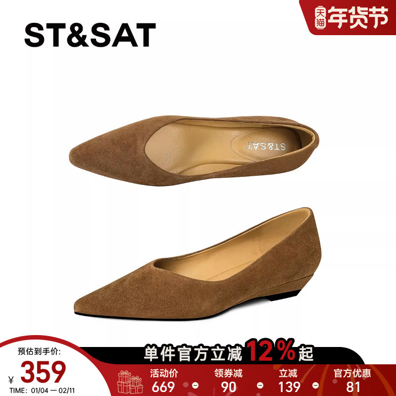 星期六英伦磨砂瓢鞋女2025年尖头软底一脚蹬不累脚平底单鞋工作鞋