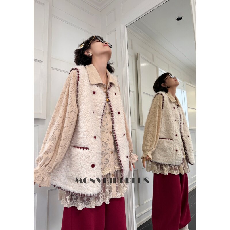 Thas9i九亿 复古庄园 轻薄棉服无袖外套女秋冬毛毛保暖外穿马甲