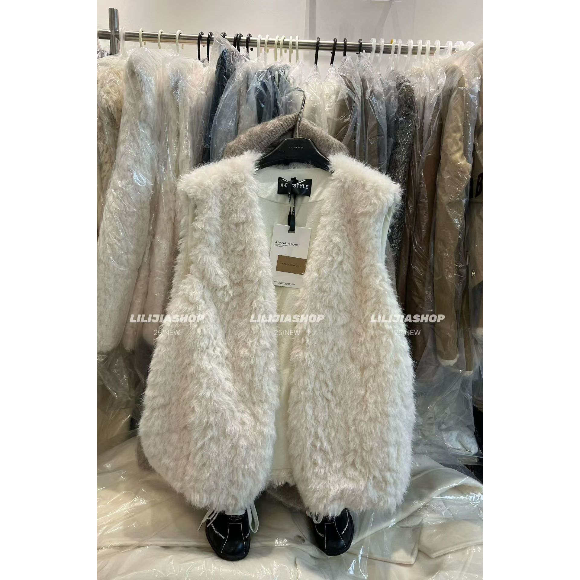 魔女MoNvKiKiPlus「雪白」大码微胖休闲宽松百搭毛毛马甲#1883