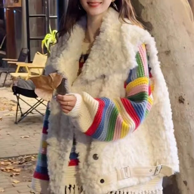 - 羊羔毛外套机车女