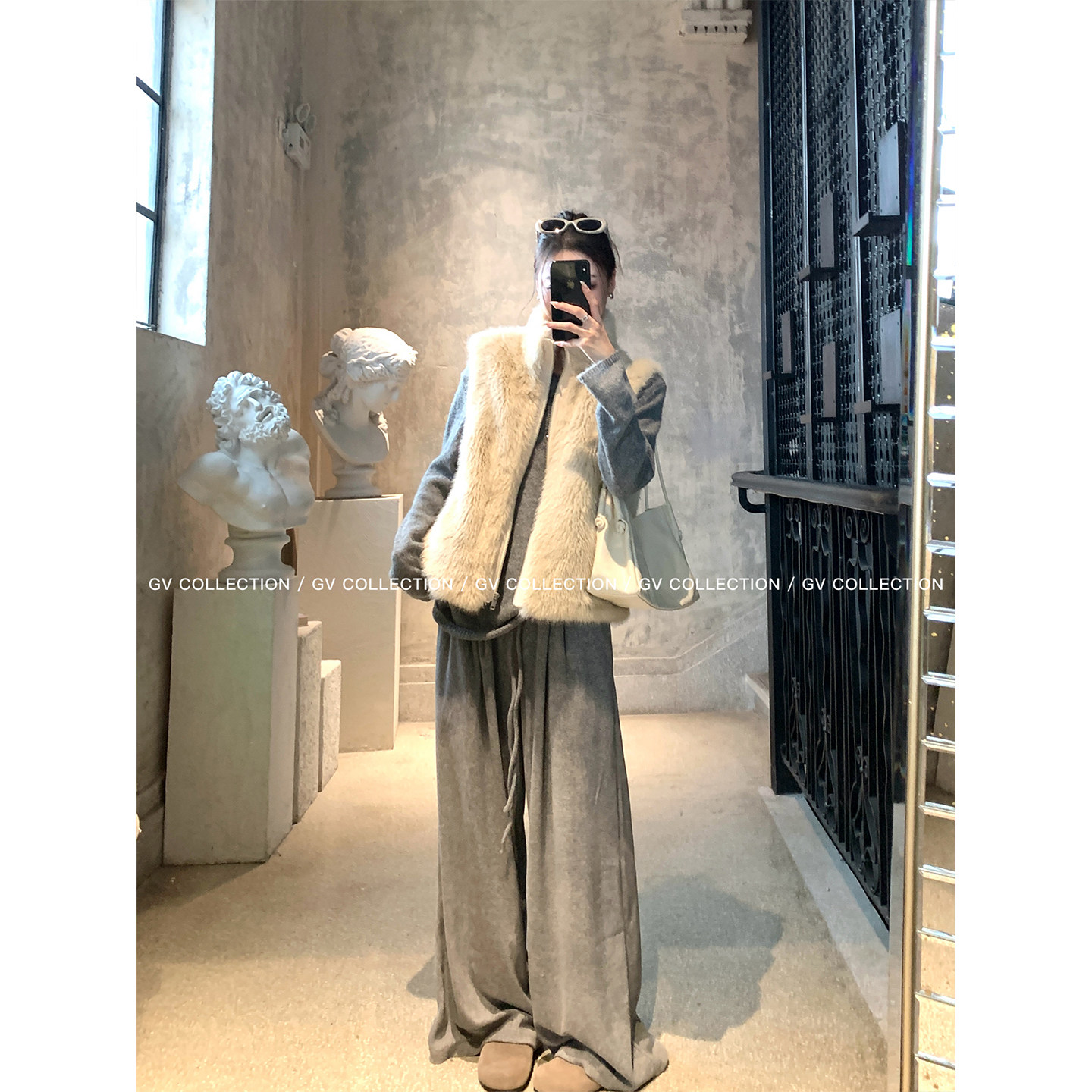 superniniyy 50度灰&环保仿真羊羔毛高级灰色质感宽松毛毛马甲女