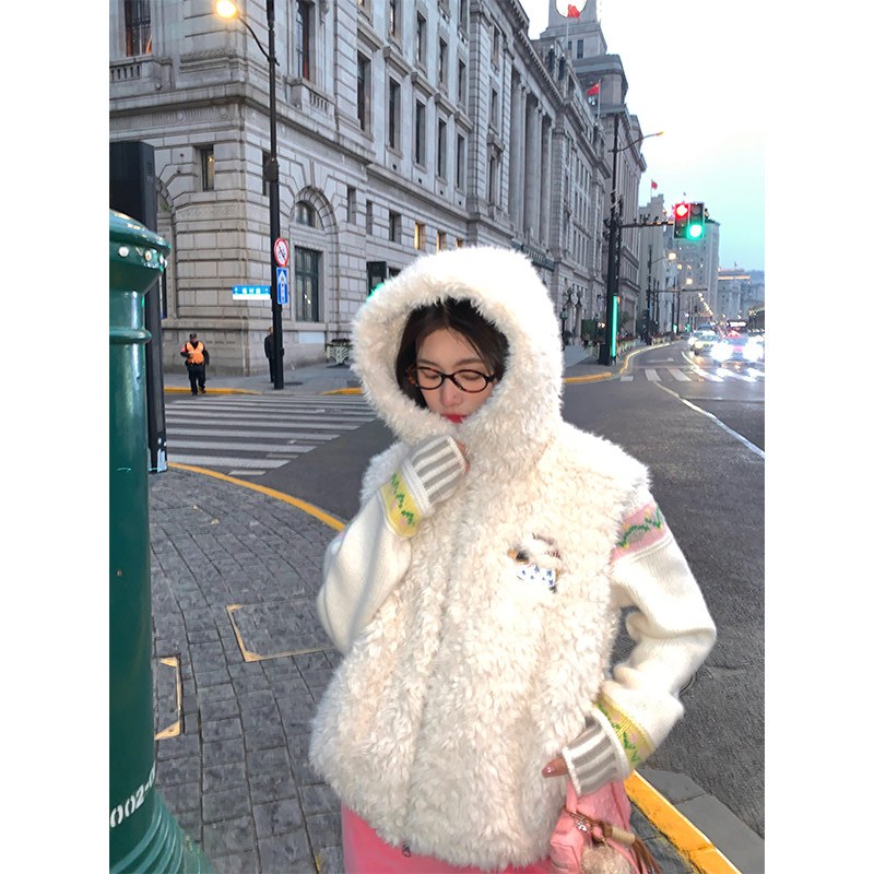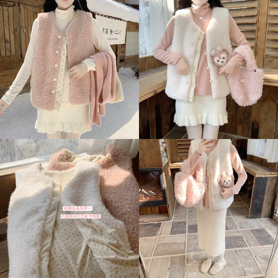 羊羔绒毛毛马甲短外套女秋冬时尚无袖坎肩背心加绒保暖马夹上衣潮