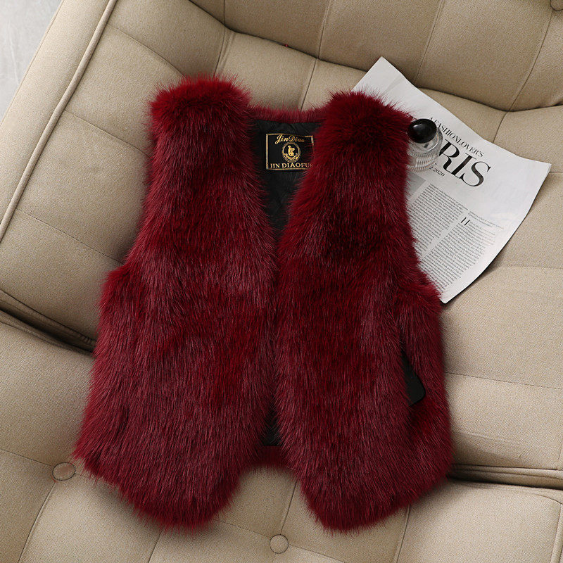 酒红色仿狐狸毛毛马甲气质马夹2025秋冬新款时尚修身显瘦百搭大码