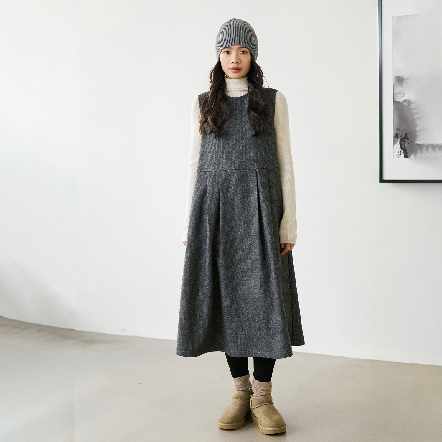 女士冬季连衣裙羊毛背心裙新款秋冬款外穿冬裙显瘦遮肉吊带连衣裙