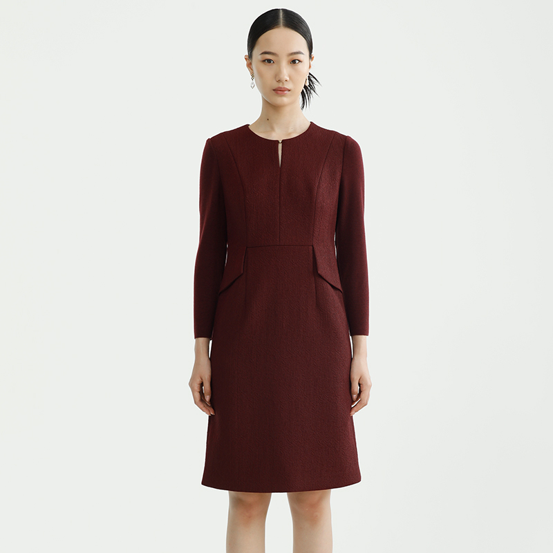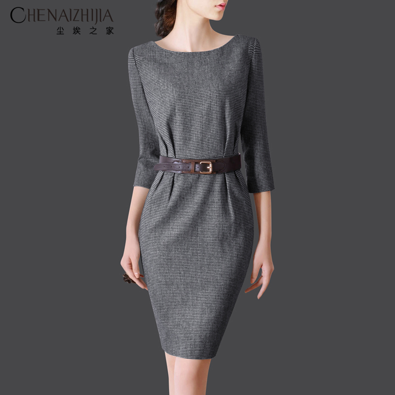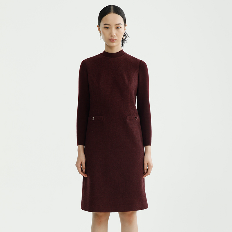 尘埃之家2025春装新款修身女装显瘦收腰包臀羊毛呢冬季连衣裙D09