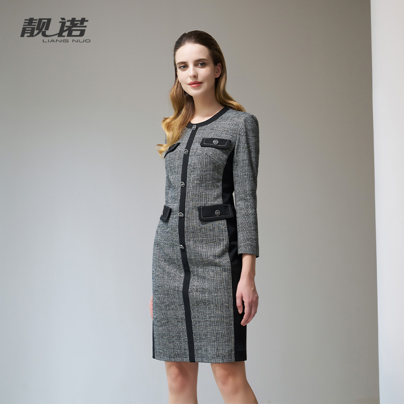 靓诺毛呢冬季连衣裙女装高级感毛衣裙小香风打底内搭裙子LL23346A