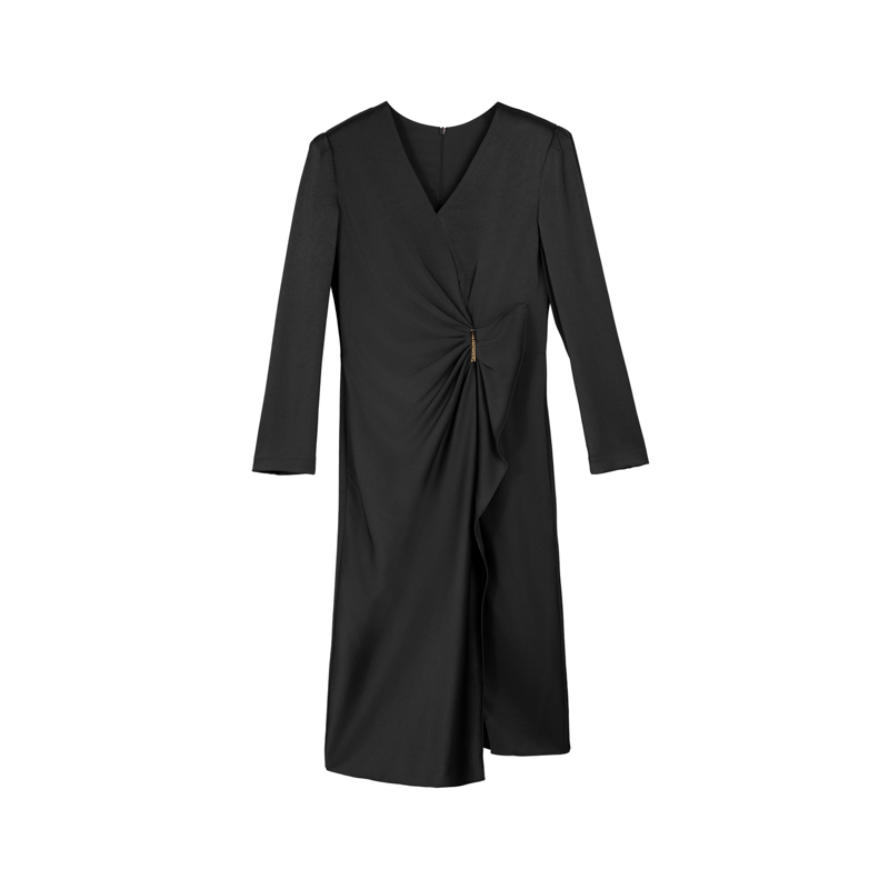 【爆米花专属】冬季连衣裙气质收腰显瘦褶皱性感黑裙AH3243373556