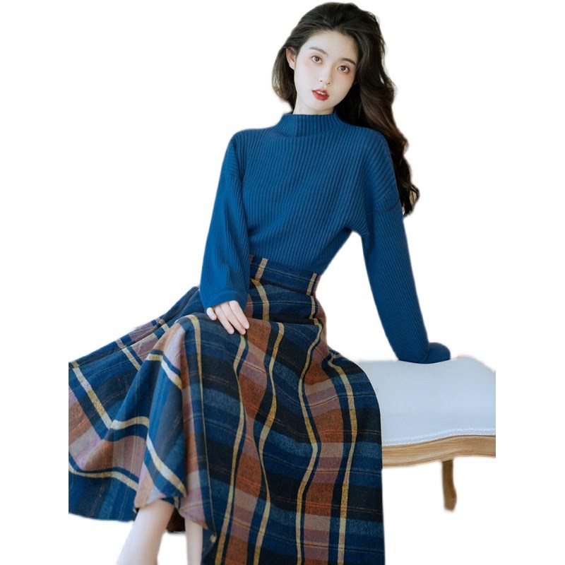 现货速发80年代装港风复古穿搭一整套秋冬季连衣裙民国毛衣配半身