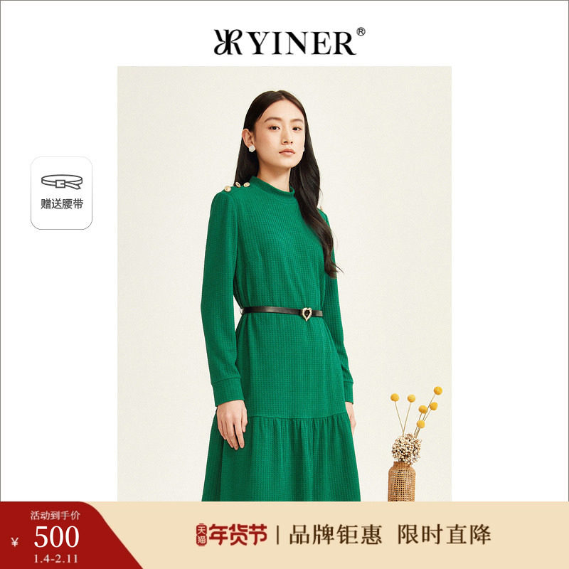 FINITY2023冬季连衣裙减龄时尚气质收腰中式复古中长款裙子女