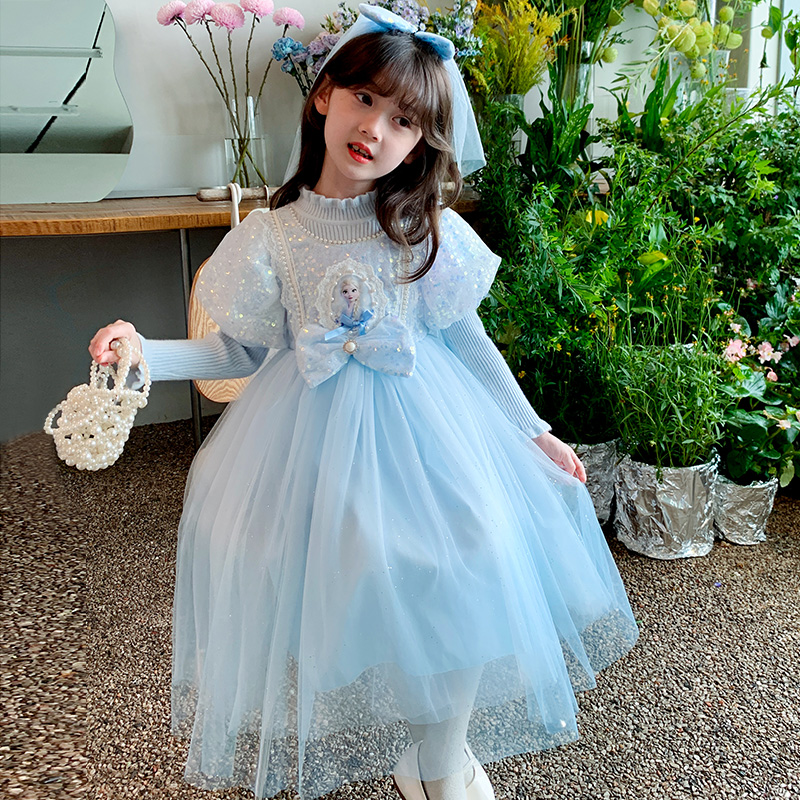 女童爱莎公主裙秋装2025新款儿童洋气秋冬女孩艾莎裙子冬季连衣裙