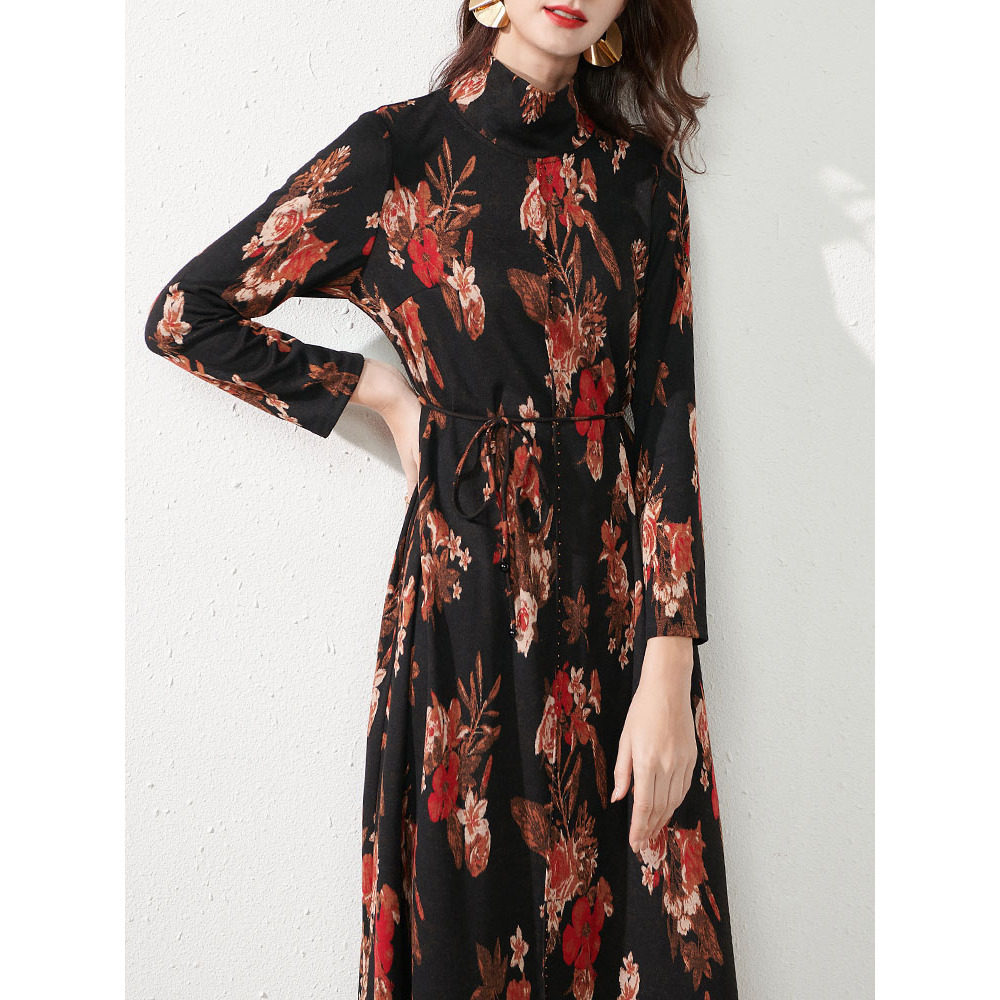 新款立领秋冬季连衣裙气质女装中长款宽松高端大码长裙子打底裙女