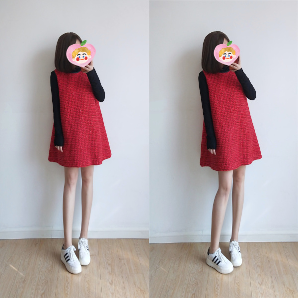 原创过新年战袍女装背心裙秋冬季连衣裙加绒加厚红色毛呢大衣外套