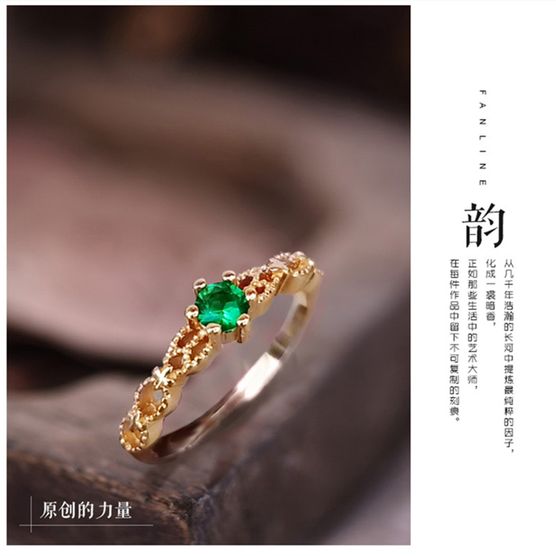 古溪小绿祖母绿戒指18K金纯银925宝石食指戒环女网红日韩潮人学生