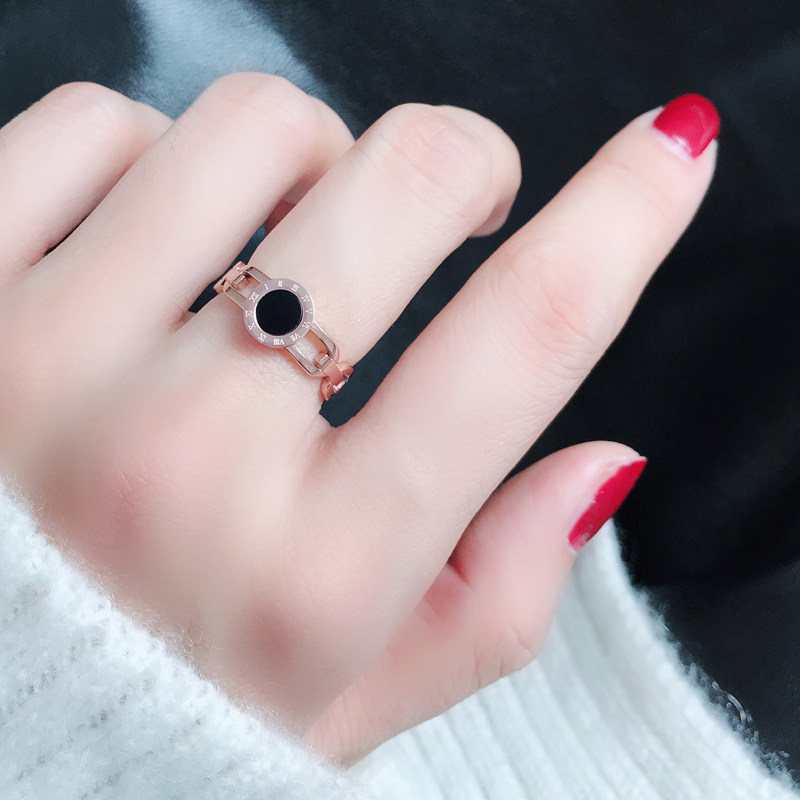 食指钛钢戒指女不掉色日韩玫瑰金潮人网红学生个性大气时尚黑指环