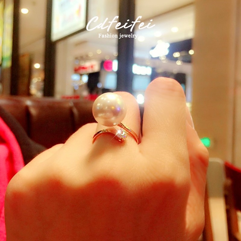 日韩食指夸张简约指环个性学生潮人奢华可调节开口珍珠气质女戒指