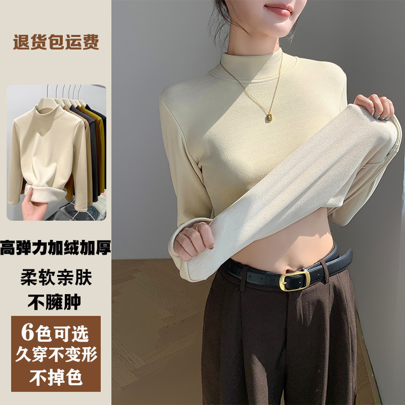 半高领羊毛打底衫女秋冬季内搭一体加绒加厚修身保暖长袖上衣内搭