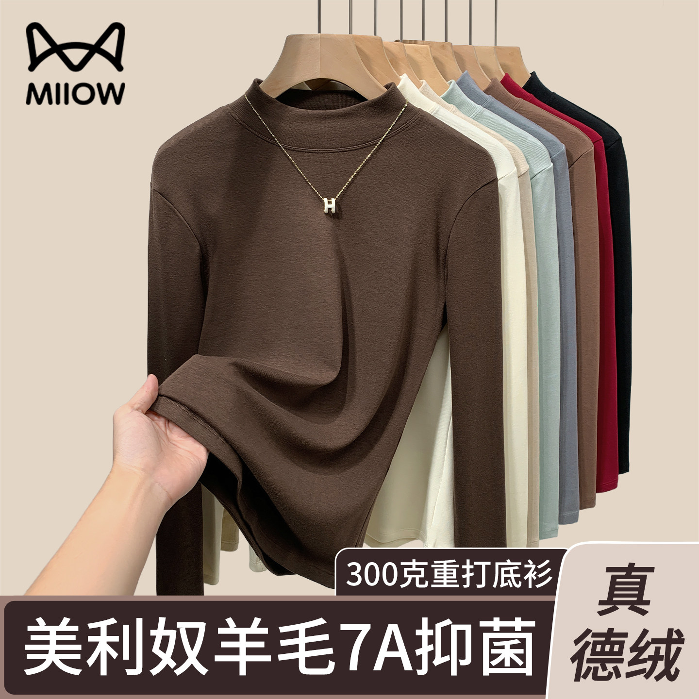 猫人真德绒半高领羊毛打底衫女秋冬内搭2025年新款休闲百搭长袖