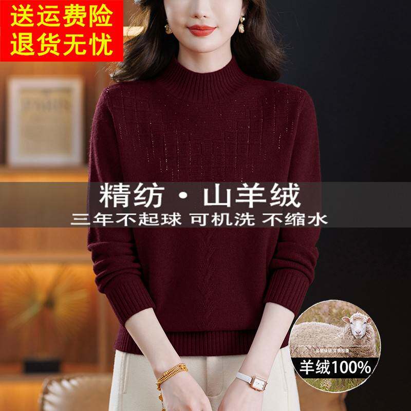 恒源祥羊毛衫女式毛衣新款半高领毛线衣秋冬官方正品针织衫打底衫
