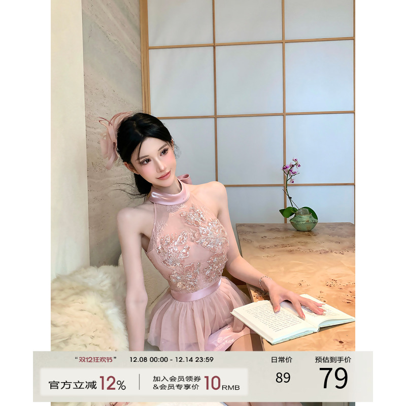 灰尘邓邓 辣妹穿搭套装女2025早秋刺绣挂脖背心上衣半身裙两件套