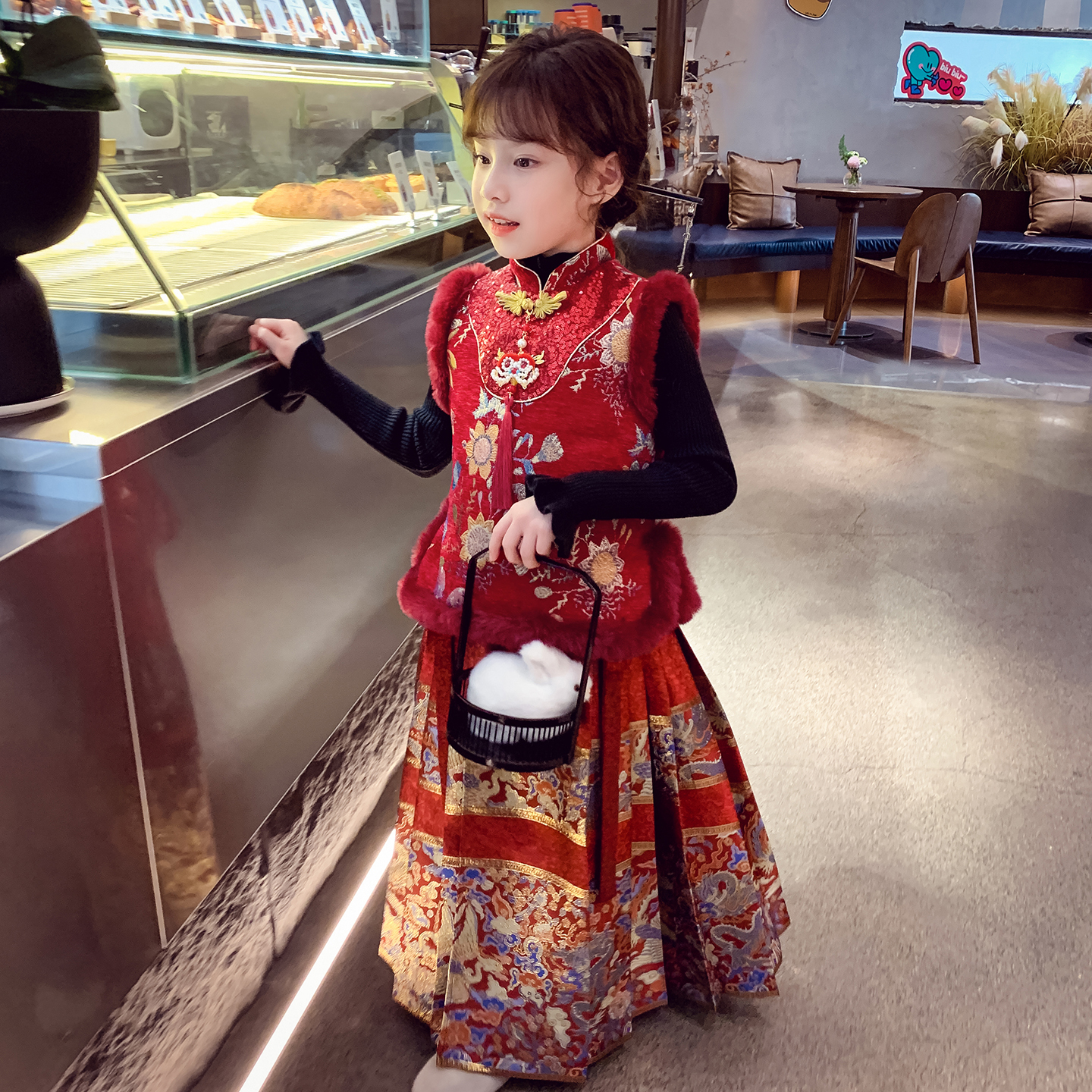 女童新中式时髦洋气拜年服冬季汉服中国风背心马面裙儿童两件套装