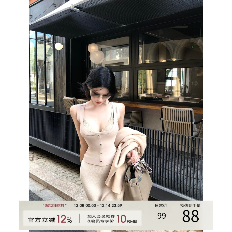 灰尘邓邓 辣妹套装女2025早秋蕾丝拼接吊带背心上衣半身裙两件套