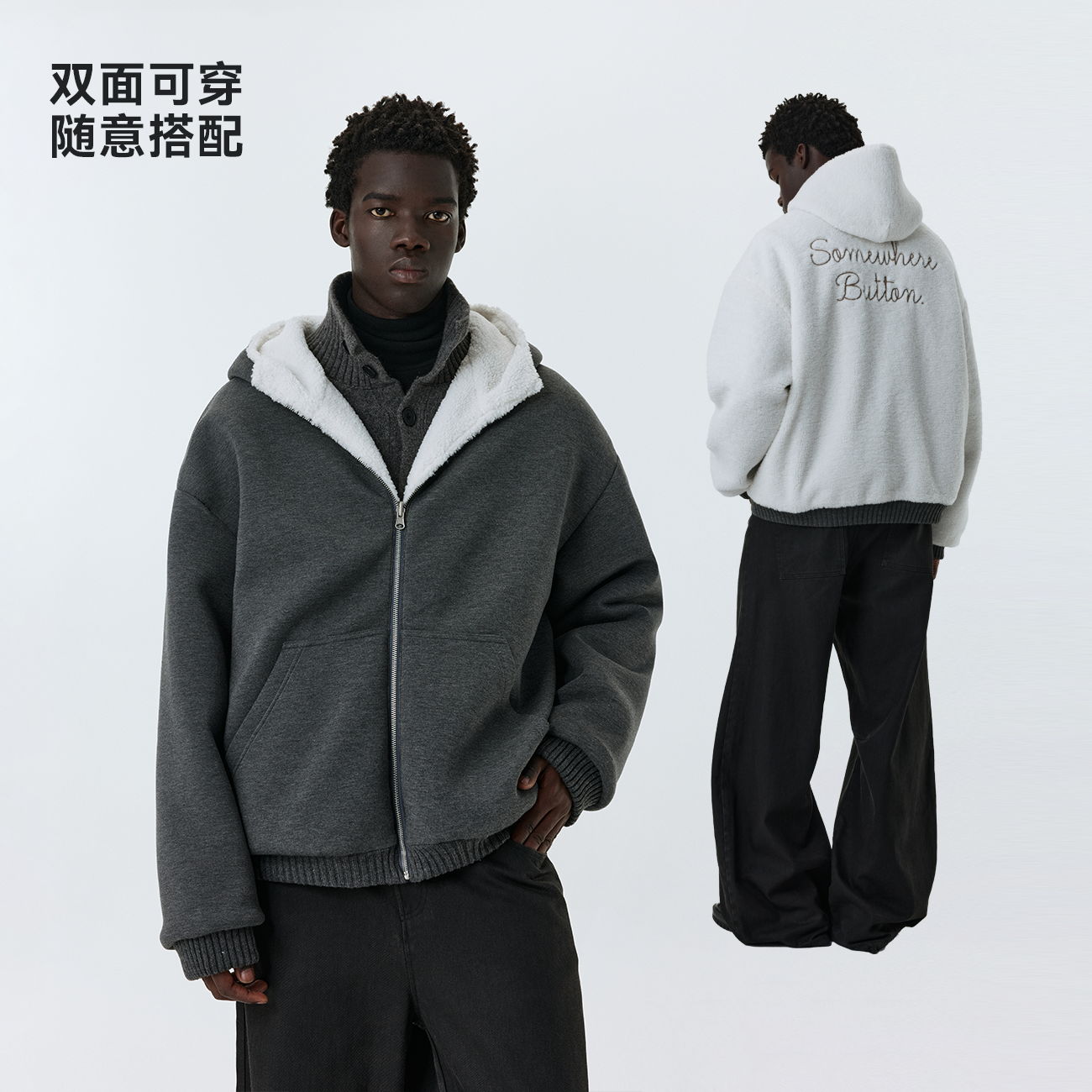 ATRY空气层羊羔绒厚外套男秋冬美式潮牌保暖双面穿加绒卫衣夹克女