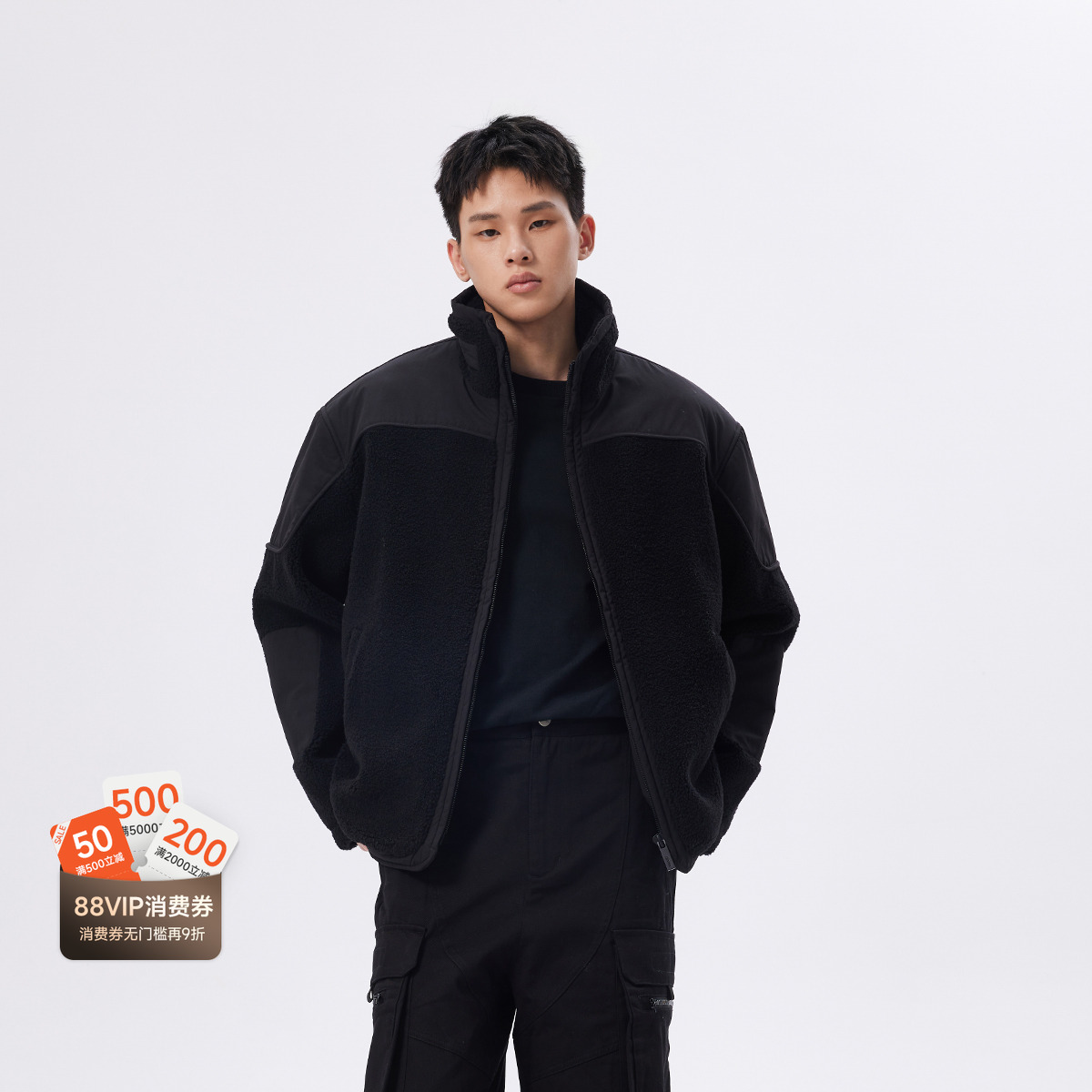 巨保暖 299欧元!YKK拉链 羊羔绒加厚立领男士夹克秋冬外套X0048