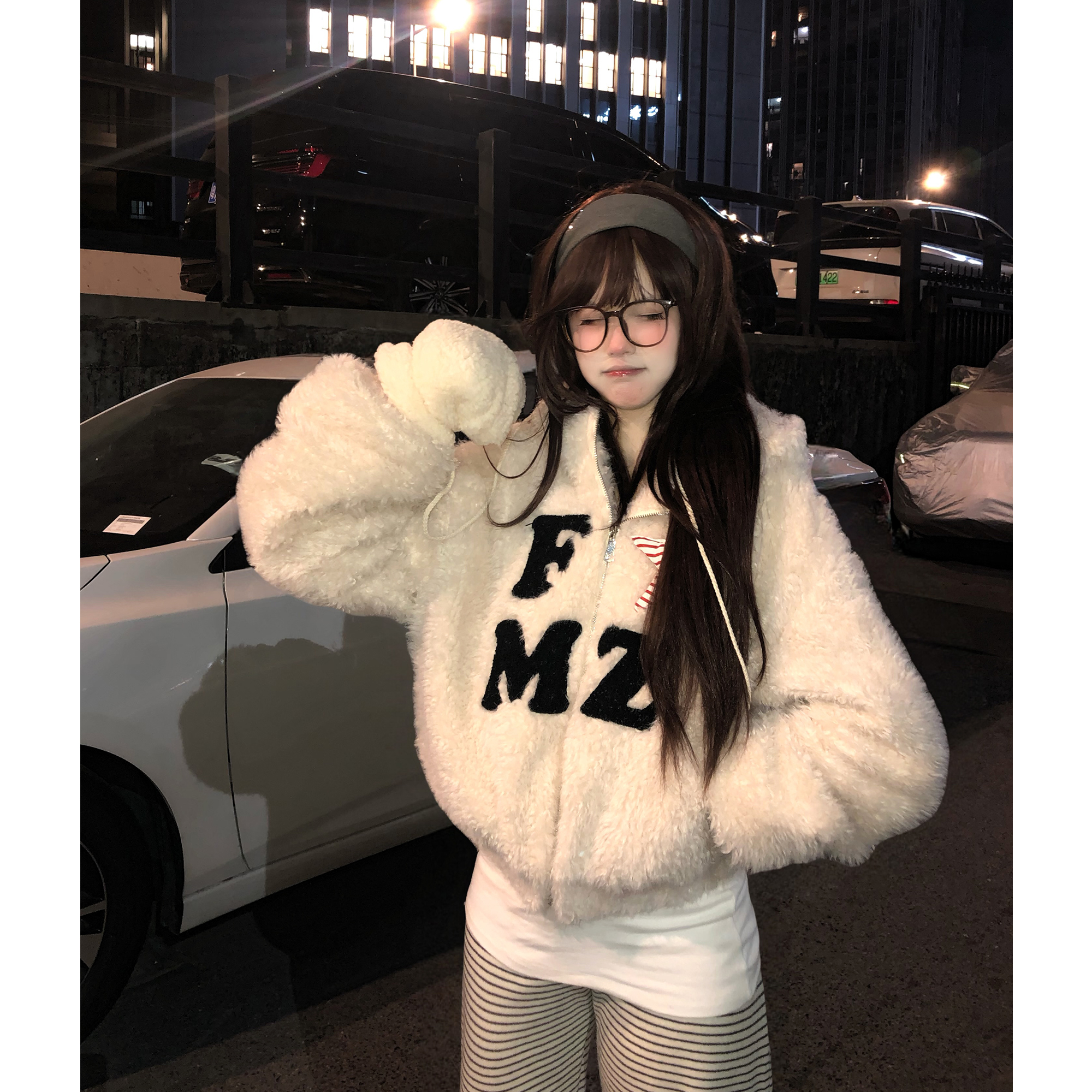 羊羔毛外套女秋冬韩版宽松加绒加厚小个子原宿风百搭学生开衫卫衣