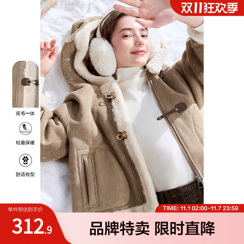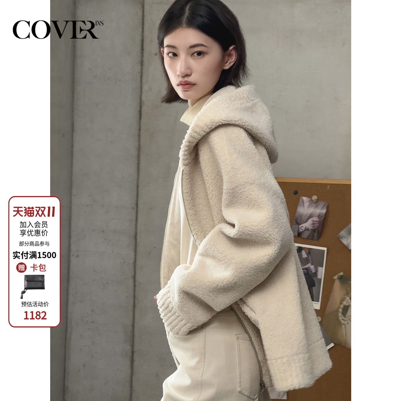 COVERINS【赵今麦同款】2025年冬季新款环保羊羔绒连帽外套女宽松