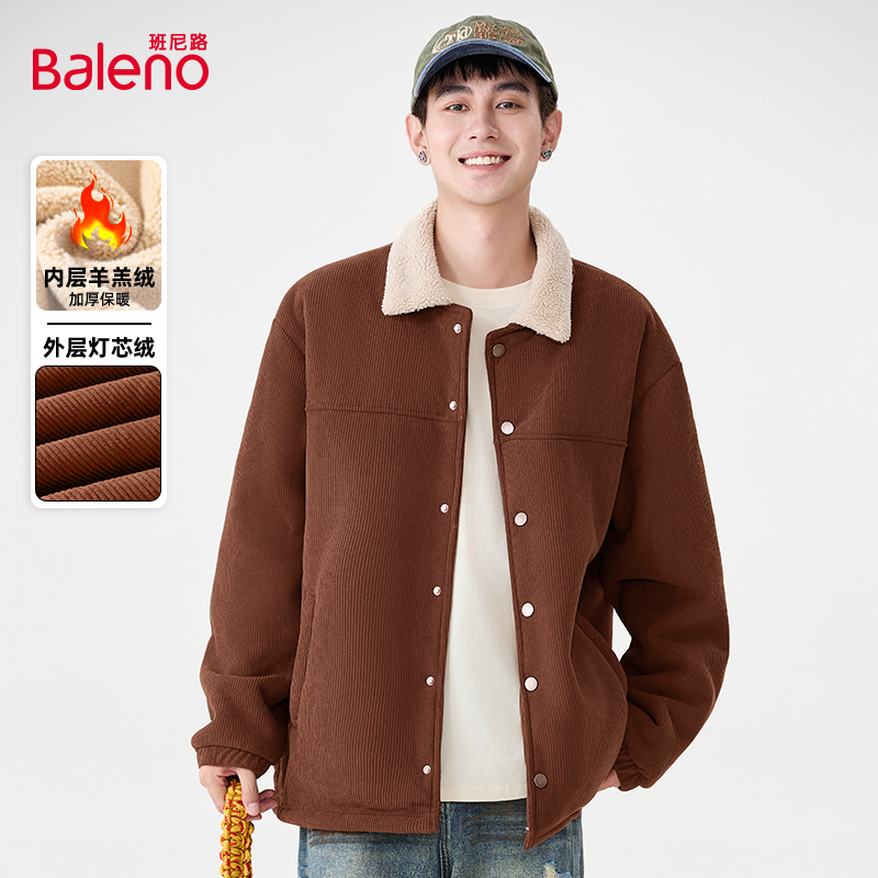 班尼路羊羔绒外套男款冬季美式复古风加厚保暖夹克新款翻领棉服男