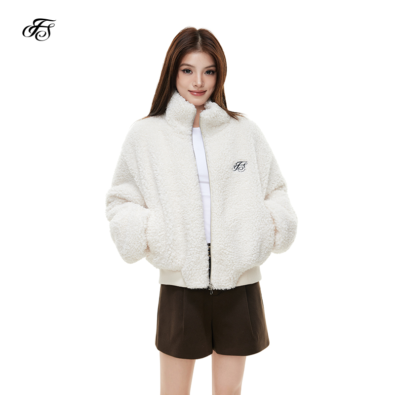FISSXS 羊羔毛拉链刺绣外套女韩系立领摇粒绒冬季休闲保暖外套女
