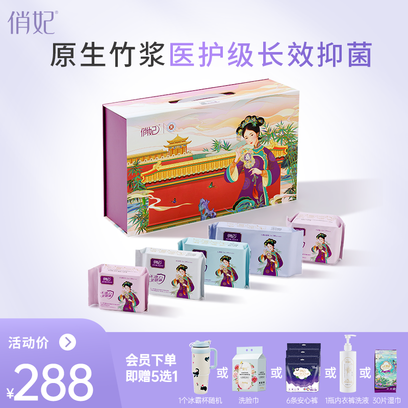 俏妃联名款日夜用组合装卫生巾爱善天使竹纤维医护级姨妈巾礼盒装