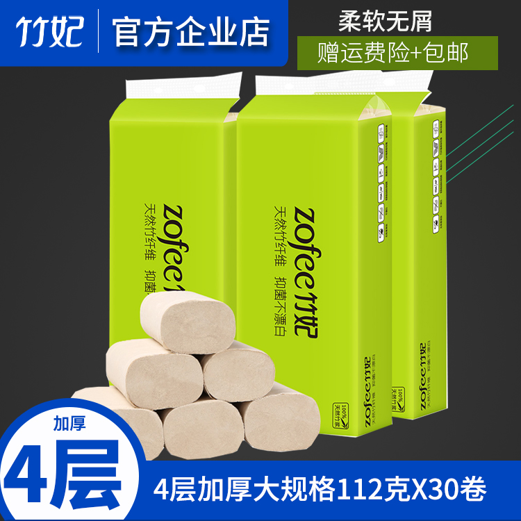 竹妃无芯卷纸4层家用卫生纸厕纸竹浆本色纸整箱卷筒纸实芯卷30卷