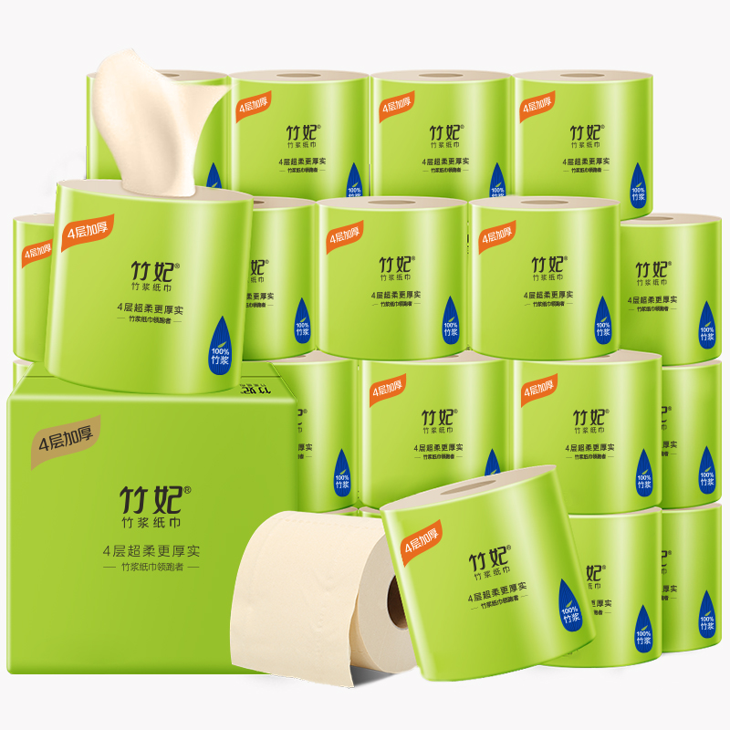 竹妃官网竹浆有芯卷纸20卷4层120g 家用卫生纸手纸厕纸卫生纸