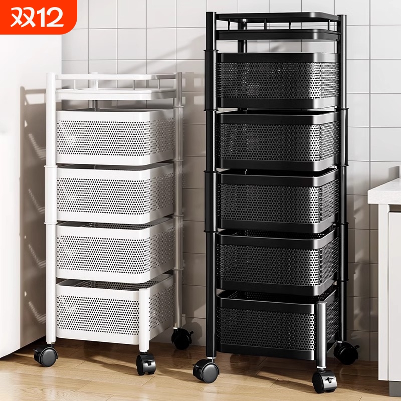 厨房置物架落地小推车多层旋转蔬菜收纳架家用零食夹缝神器可移动