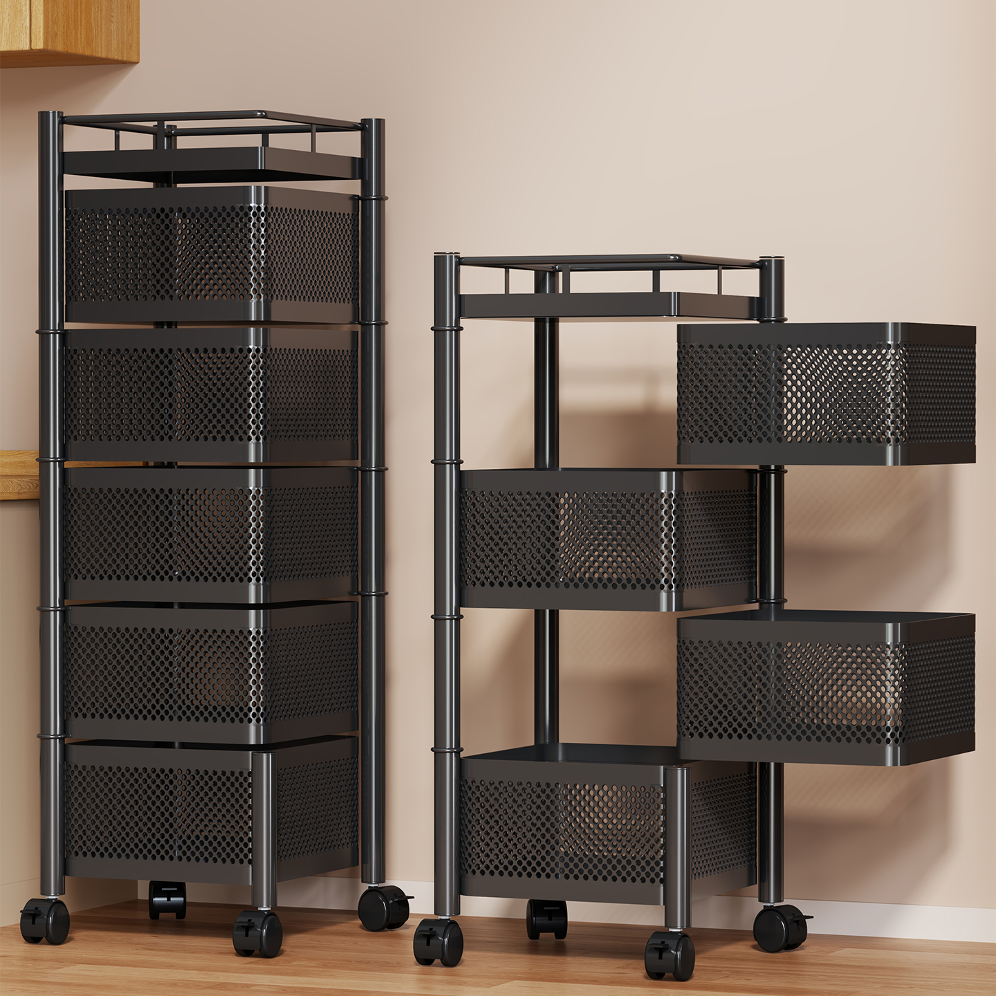 厨房旋转置物架家用落地多层零食箱客厅果蔬菜篮小推车收纳架移动