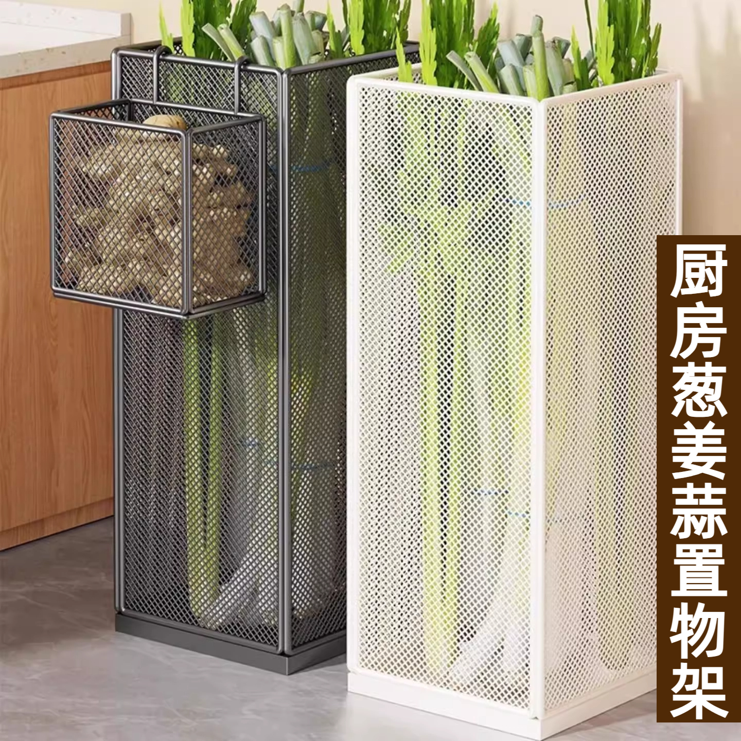 蔬菜收纳架壁挂式大葱山药蔬菜储物桶壁挂免打孔窄缝葱姜蒜储物筐