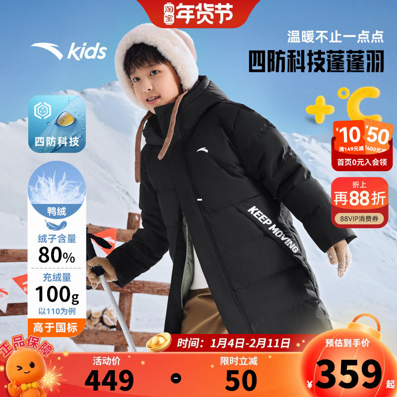 安踏儿童男女中长羽绒服2025冬上新舒适保暖中大童四防连帽羽绒服
