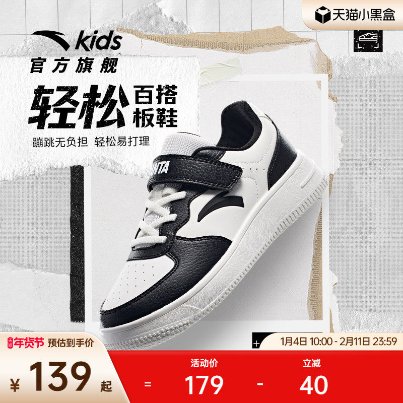 安踏儿童休闲鞋百搭小白鞋板鞋小学生经典休闲幼儿园中大童运动鞋