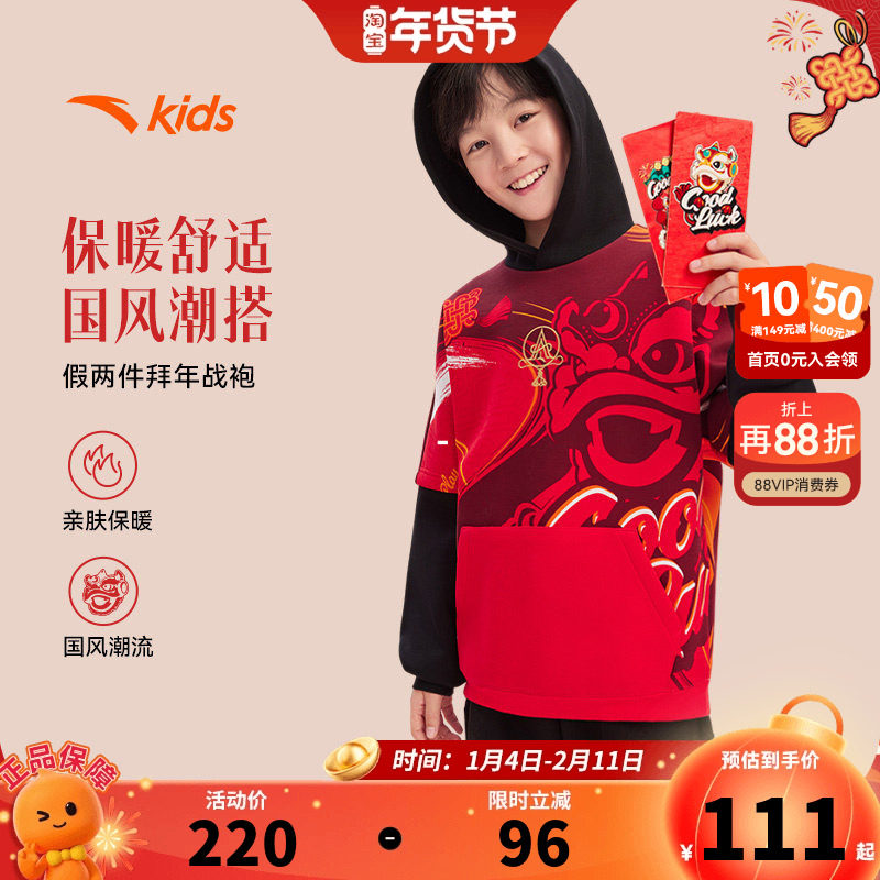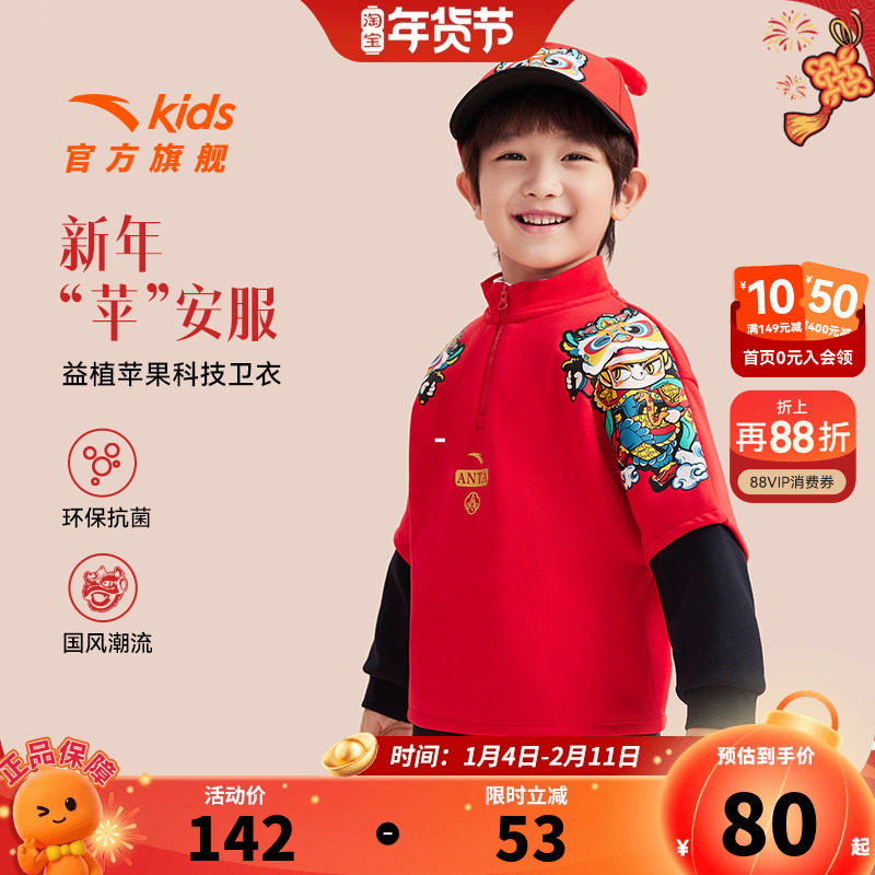 安踏儿童男小童醒狮卫衣红色立领套头衫2026春秋新款潮酷宝宝上衣